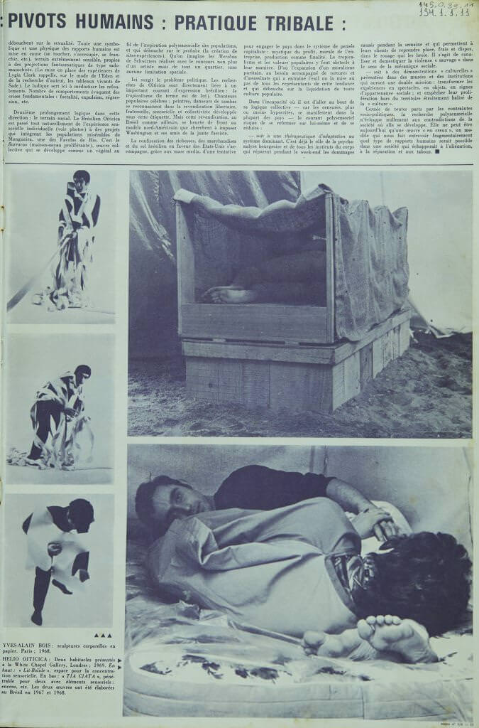 Revista Robho, reportagens sobre arte e artistas em geral, como Lygia Clark e Hélio Oiticica. Na revista há a publicação de um texto de autoria de Lygia Clark, chamando "