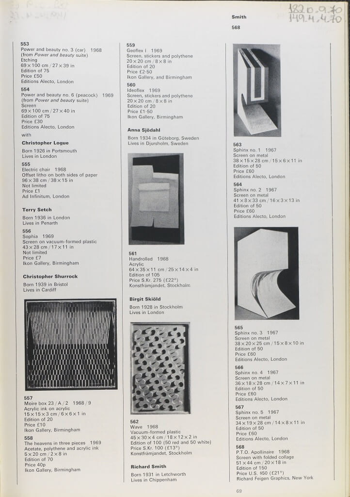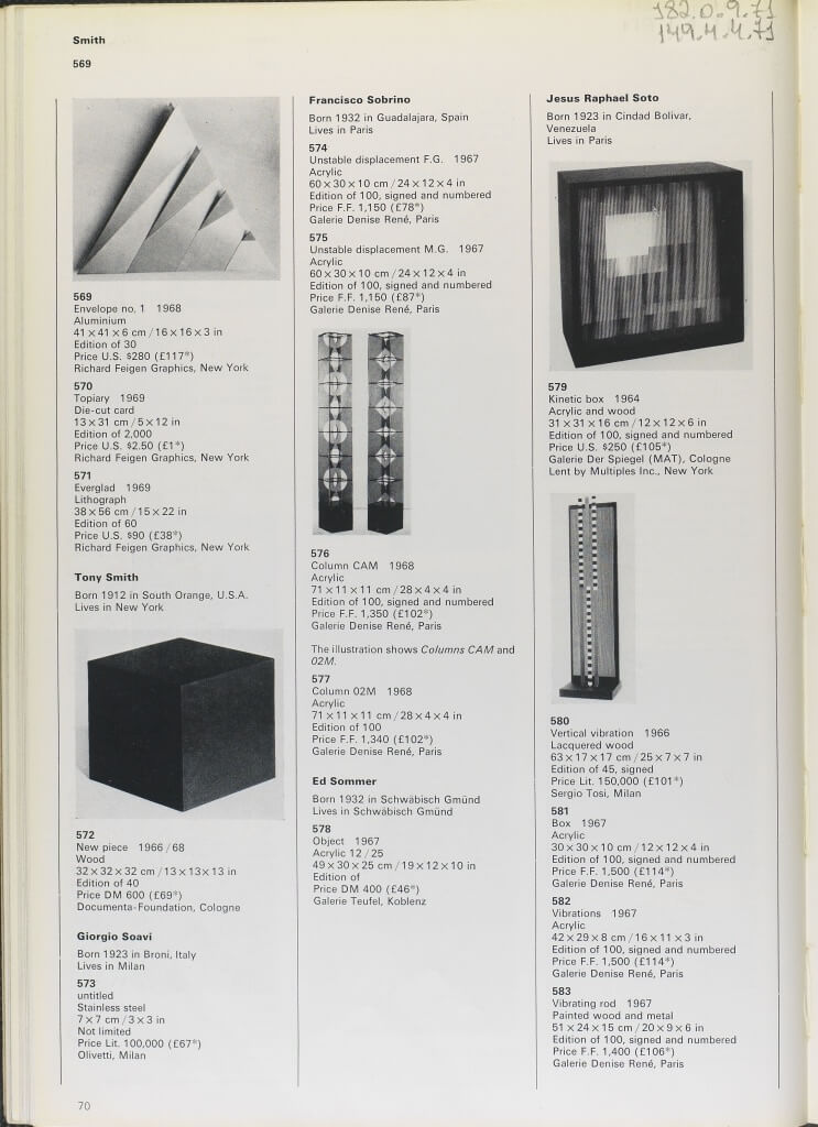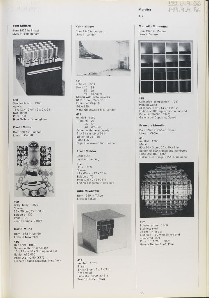 Catálogo da exposição "3 – ∞: new multiple art - (Three Towards Infinite: New Multiple Art)" realizada na galeria Whitechapel Art Gallery, em Londres, entre novembro de 1970 e janeiro de 1971.