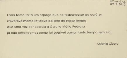 Convite da exposição "Hélio Oiticica/ Lygia Clark/ Lygia Pape: "A Extensão da Arte"", realizada na Galeria Mário Pedrosa em Niteroi - 1994.